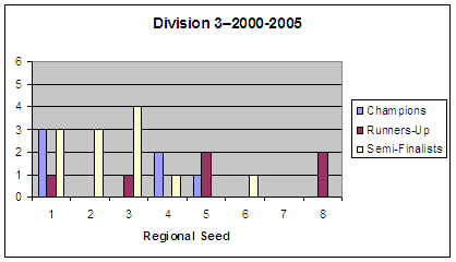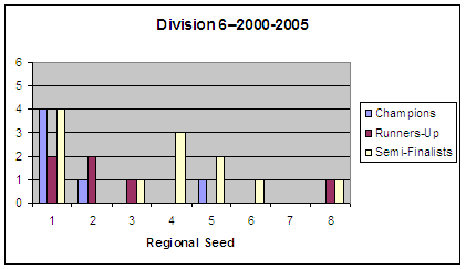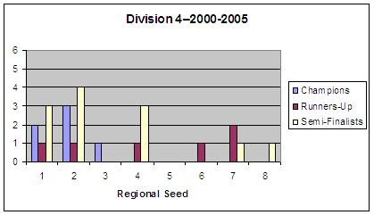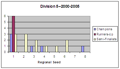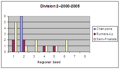 Below are the results by year and division with regional seeding included.