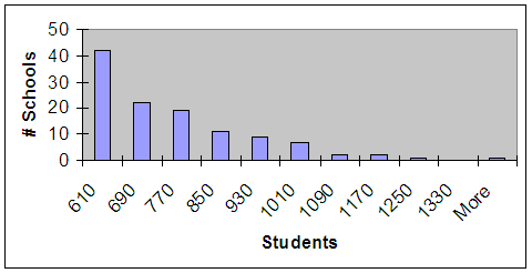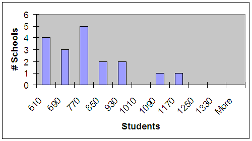 As can easily be seen, the division is made up largely of schools that are closer to the minimum enrollment requirement. This would be known as a right-skewed distribution. A small number of the very largest schools make up the right side of this distribution. To the OHSAA's defense, they probably looked at this distribution and decided there was a natural break that would allow them to make a new division of the "Super D1s."